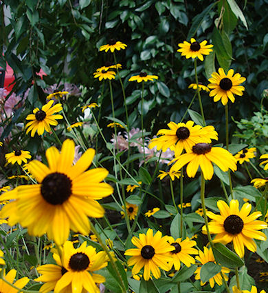 Garden Phlox, Coreopsis, Stokeasia, Sunflowers, Tansy, Gladiolus, Daylilies, Blackeyed Susan, Trumpet Vine, Liriope, Pampas Grass, Fountain Grass, Eulalia Grass, Rose of Sharon, Hibiscus, Abelia, Roses, Crape Myrtle and a full array of annuals.